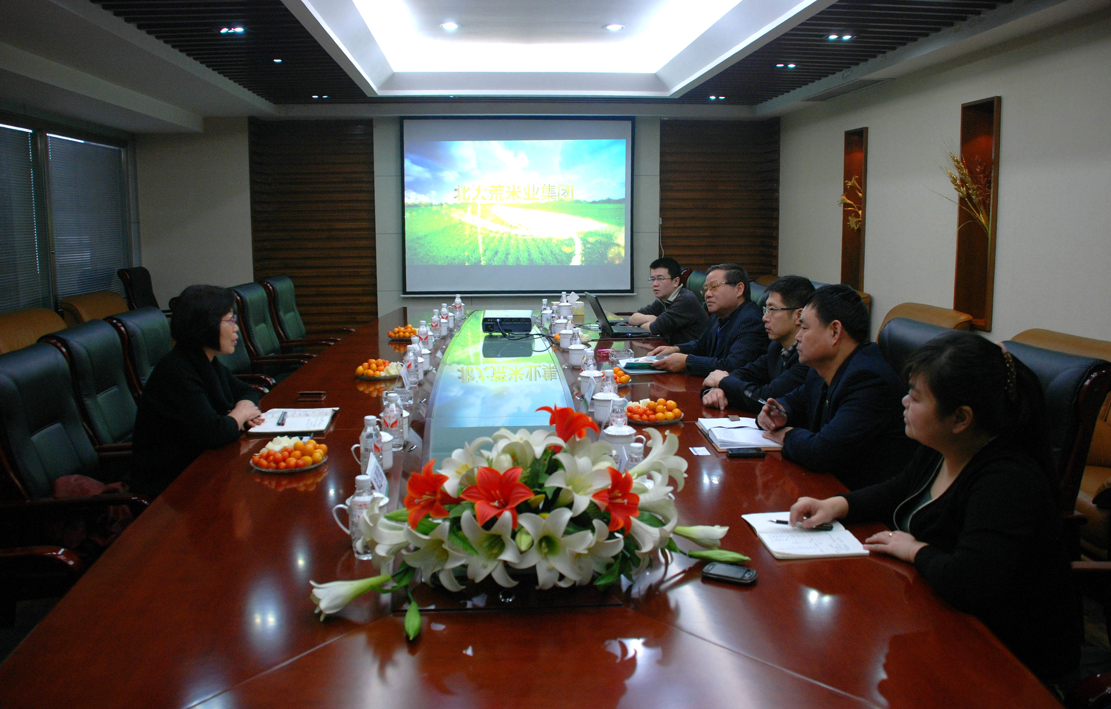 圖為大連高新技術(shù)園區(qū)投促局副局長楊慶訪問北大荒米業(yè)