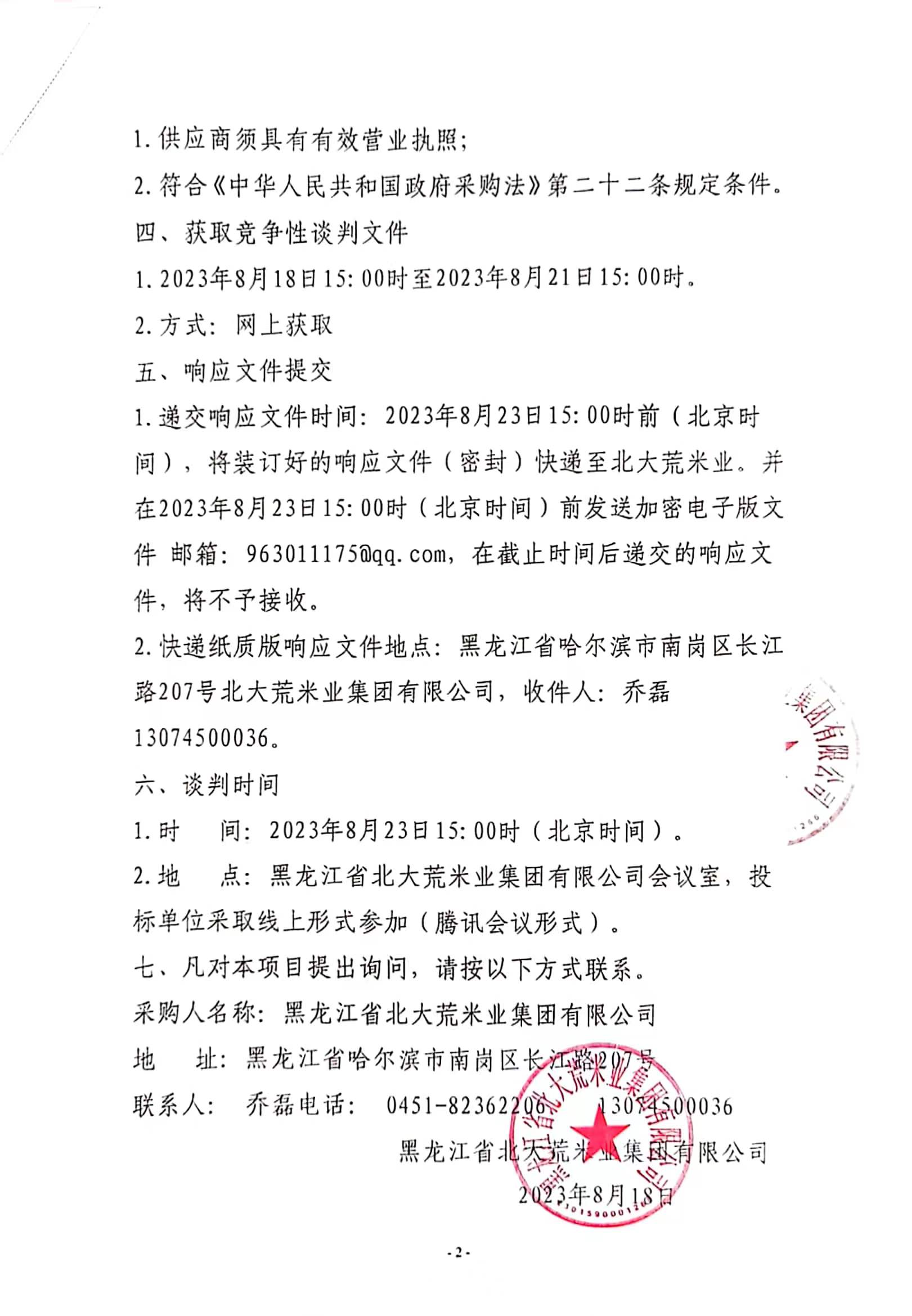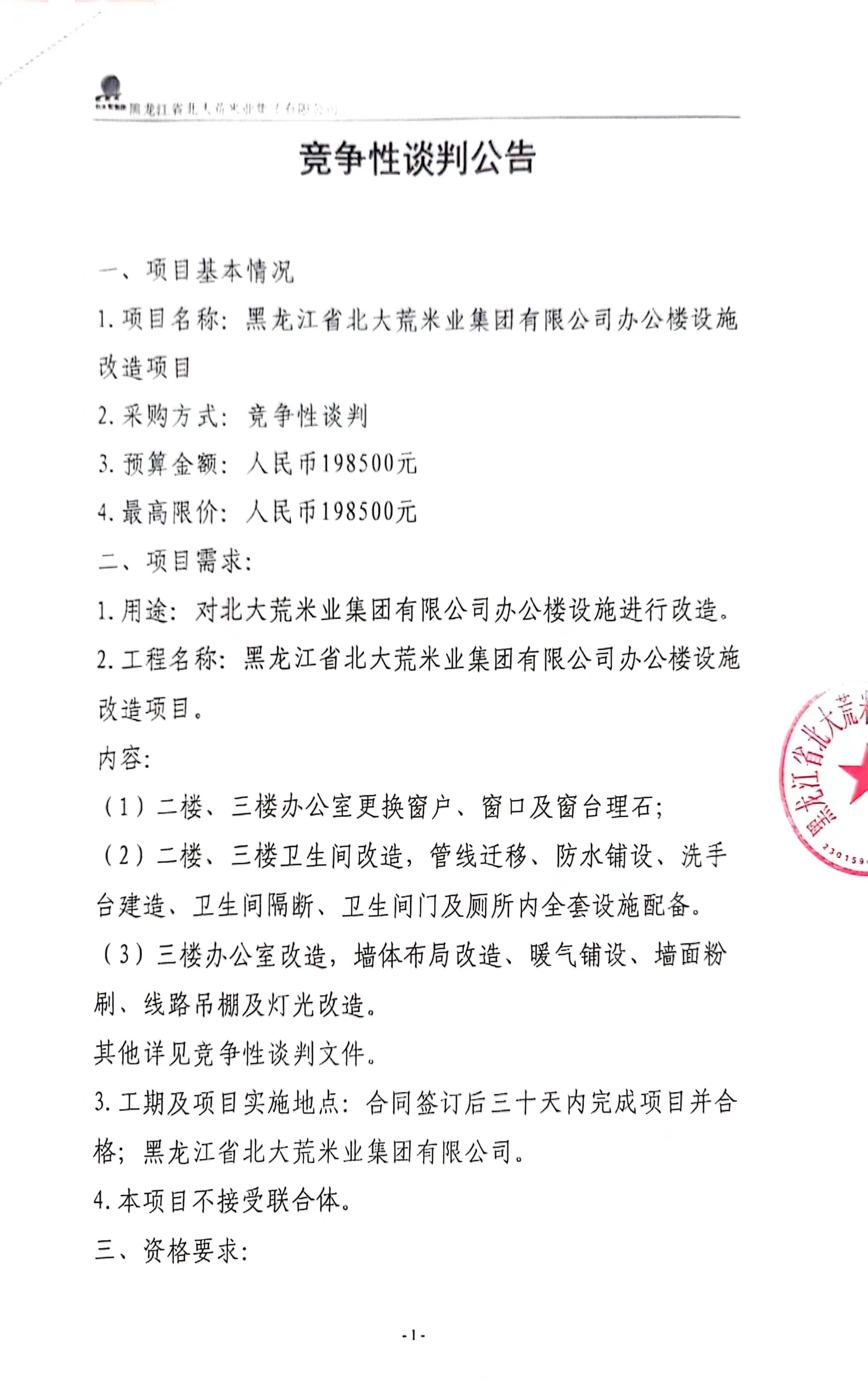 黑龍江省北大荒米業(yè)集團有限公司辦公樓設施改造項目競爭性談判公告