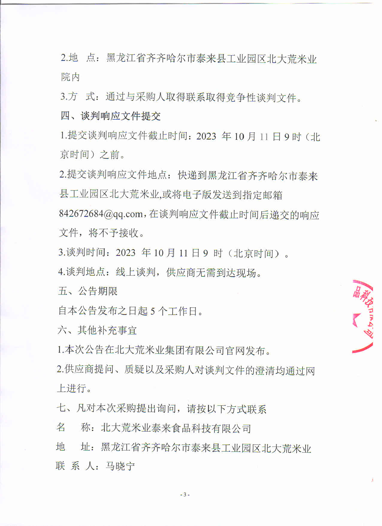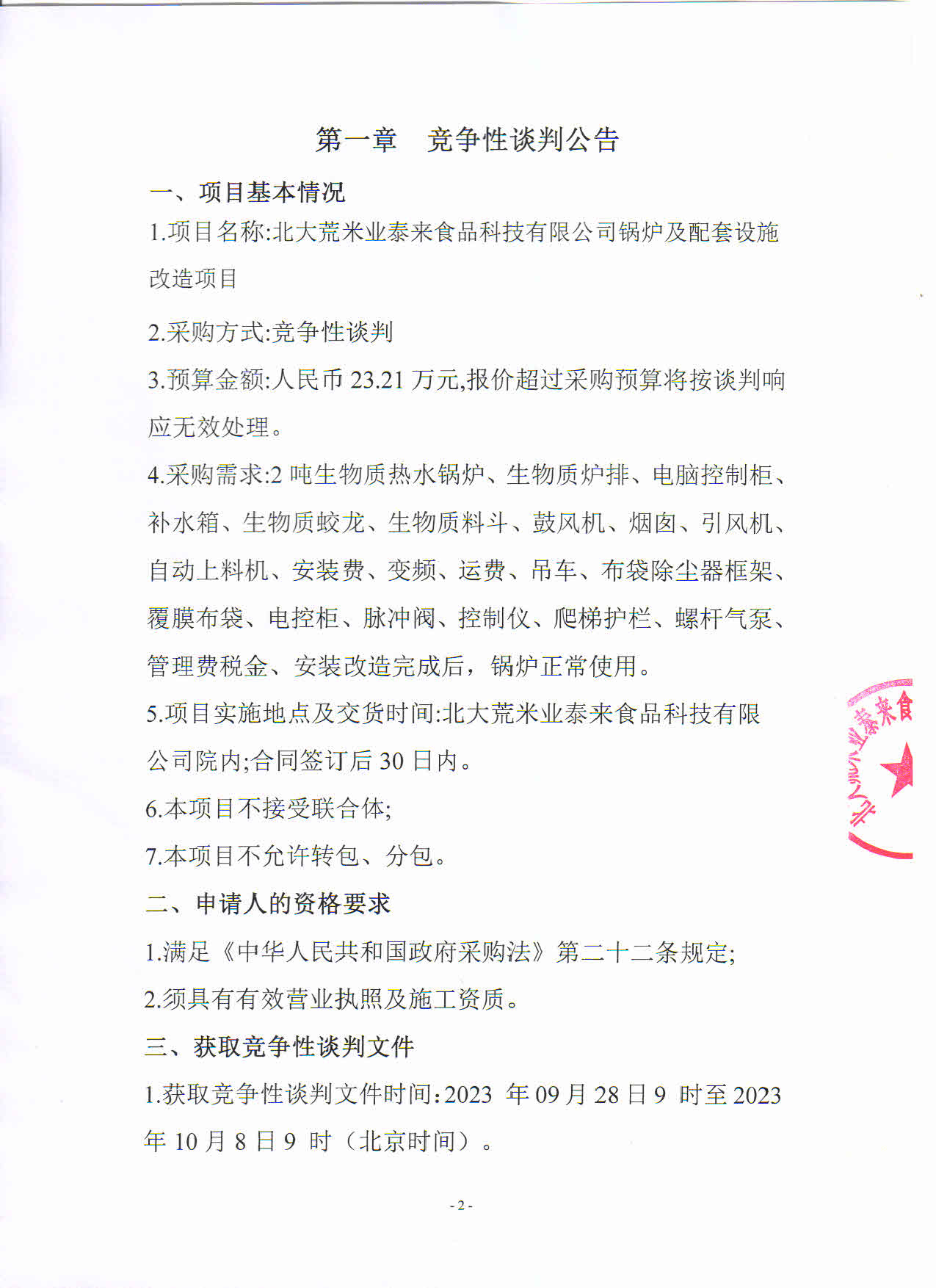 北大荒米業(yè)泰來(lái)食品科技有限公司鍋爐及配套設(shè)施改造項(xiàng)目競(jìng)爭(zhēng)性談判公告