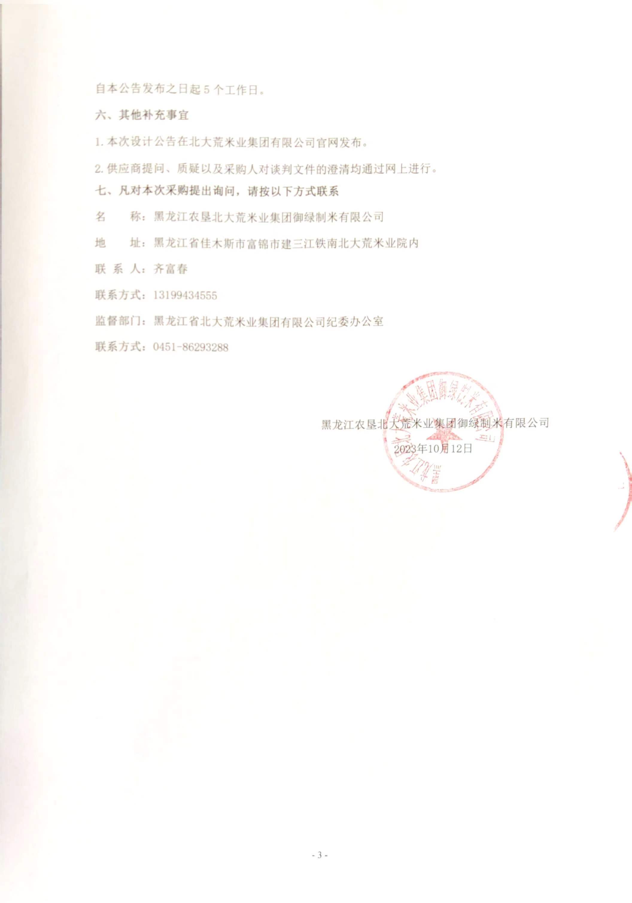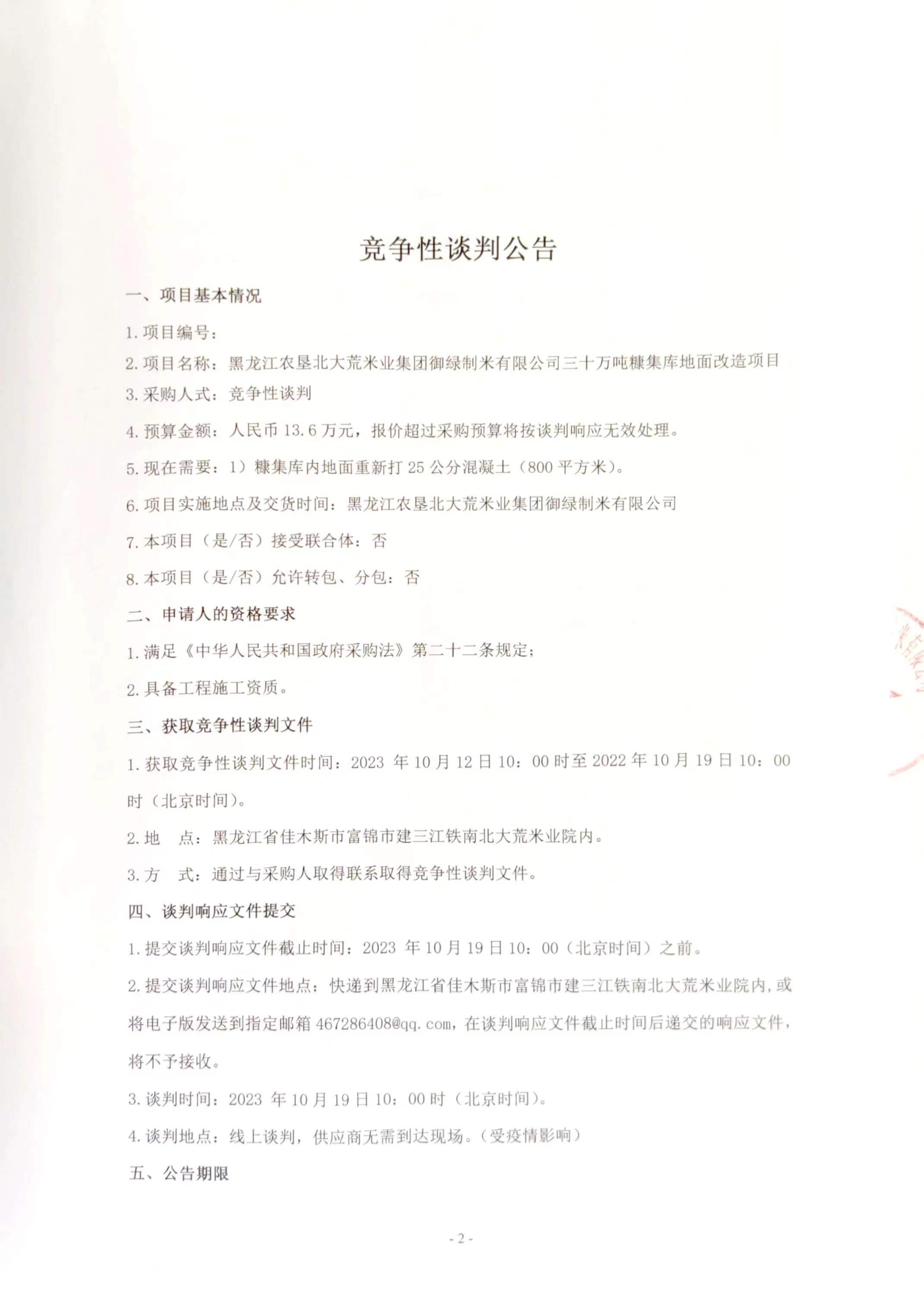 黑龍江農(nóng)墾北大荒集團(tuán)御綠制米有限公司三十萬噸糠集庫地面改造項目競爭性談判公告