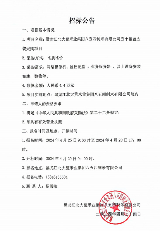 北大荒米業(yè)854制米公司五個覆蓋安裝采購項目招標(biāo)公告