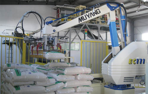 為加快實(shí)現(xiàn)北大荒米業(yè)集團(tuán)百億工程目標(biāo),二九〇制米公司于今年4月5日開始,加大力度、加快速度,全面抓好二期工程建設(shè)。圖為生產(chǎn)線上安裝的國(guó)內(nèi)先進(jìn)碼垛機(jī)器人。